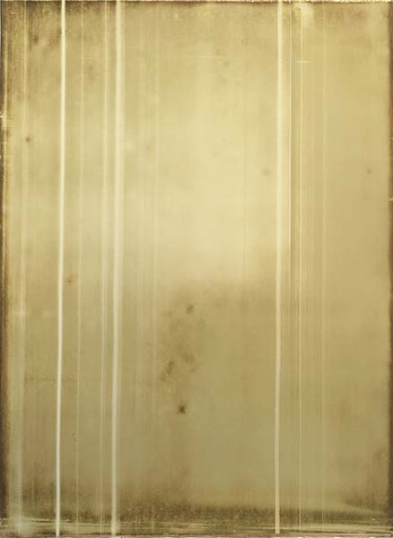 In the case of the Mass-Raster, the viscosity of the paint and the materiality (texture) of the 'ground', whether it be paper, panel or canvas, combine through a highly regulated, metronomic process of layering. Paint is applied to traditional watercolour paper using a screen-printing squeegee. A squeegee is employed, since its conventional function is to apply a film of ink or paint as evenly as possible, and as such it is not a drawing tool used to construct a sense of space or gesture. This is a uniform application from top to bottom, left to right, which is then reversed and repeated multiple times over a period of weeks. What results is varying sequences of repetitive, wave-like latitudinal and longitudinal striations which map the surface of the paper from edge to edge. Numerous formal, material and environmental factors, such as room temperature and the porous nature of the paper, then determine how the image develops. The interaction between these various elements leaves a trace which is created by, and records, the actions and materials employed. The resulting residue delivers inflections which pulse and tremor. With each pass and touch of the squeegee, the film of paint is affected by the resistance brought about by qualities intrinsic to the paper. The scraping action of the squeegee tears fragments of the paper's deckled edge, which in turn mixes with the paint. With each consecutive pass a raking effect is produced.