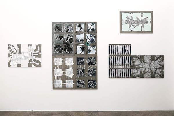 This sounds various and it is. But coherence comes from two things: the works in the front gallery share the oval as their leitmotif of composition, and there is throughout a playful attitude to materials and subject matter, which is best described as surreal. Right through Morison's practice, the beautiful and the abject come close, and the body whimsical rubs shoulders with the rigours of geometry. A sense of play bounces off any gravitas, and in Julia's hand, line can be utterly controlled but also flicked, poured and left wonderfully curlicue. Found materials, meantime, are constantly recycled and re-presented as something fascinating and new.