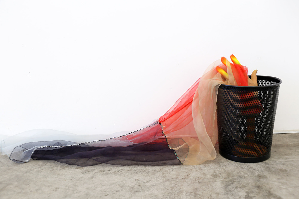 wire, plastic, fabric, found object