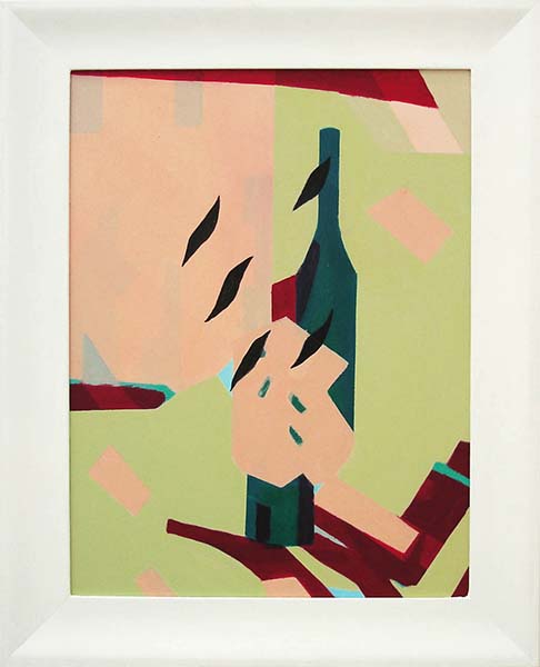 Are Saskia's paintings getting louder? They are certainly increasingly stereophonic. Some colours appear to have increased in volume or saturation, while others are quieted or slightly muted through sanding. This treatment of surface creates texture and spatial depth, whereby colour and form oscillate between foreground and background. Black forms in these paintings resemble leaves and grapes that float in front of layered colours, at the same time acting as deep cuts or voids into the painting.