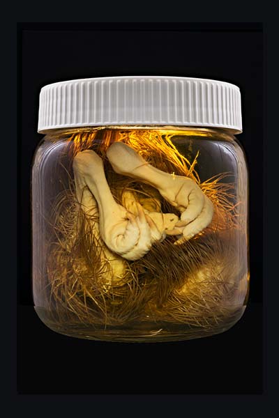 Museum 'wet stores' continue to be a source of inspiration for Neil Pardington in his latest show entitled The Order of Things at Jonathan Smart Gallery. The artist is no stranger to collections and collection areas, as those familiar with his exhibitions The Vault, 2007 and The Wet Room, 2009 well know. Now in the Auckland and Otago Museums, it is the confronting and 'terrible beauty' of individual specimens, crammed into glass jars of alcohol solution, which has caught his eye. Also striking to Pardington is the structure given by the glass jars, stacked and lined up row upon row in various shelving units, their placement designated by the Linnaean classification system of the collections. It is this taxonomy, this 'order of things' which is reflected by multiple grid-like photographs meticulously positioned by the artist upon the gallery walls.