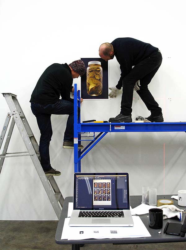 Neil Pardington, with the assistance of Rob Hood, installing the first print