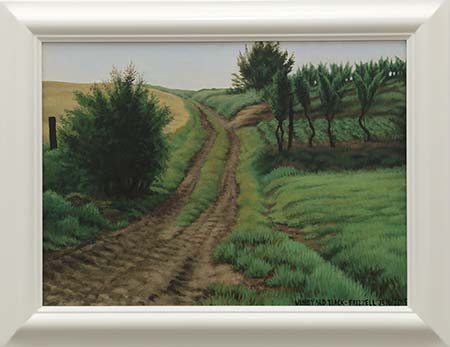 Frizzell says that "I carry in my head a set of proportions (weights and measures) that I work with, and that consequently I'm always looking for motifs in the world that echo these precepts." With regard to this set of paintings then - a track, road or driveway that sinuously leads our eye is a starting point, with density of trees and trimmed shelterbelts as counterpoint - all rolled out in the gentle countryside of New Zealand.