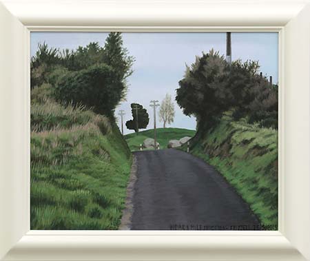 A series of 13 small landscapes sit well in the intimate space of the back gallery. Dick Frizzell's travelling show Up the Road has made yet another stop. Familiar scenes of rural New Zealand greet visitors, and give privileged access to the eye of the artist and the views that have captured his imagination during his many road trips.