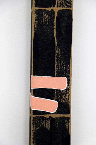 The show is called Vision Tunnel, and behind the painterly fluoro yellow brush-marks, as broad and brick-like as the concrete blocks below, seeing is sharpened by the quiet yellow glow. The painted fields stop short of the glazed pane edges, though, and there's a trick. Cue the edges of the paintings in the show - often offset, wrapped by form, and always carefully conceived and executed with precision.