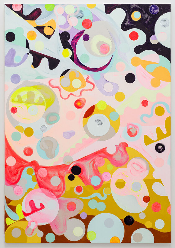 acrylic, metallic leaf and varnish on stretched canvas
