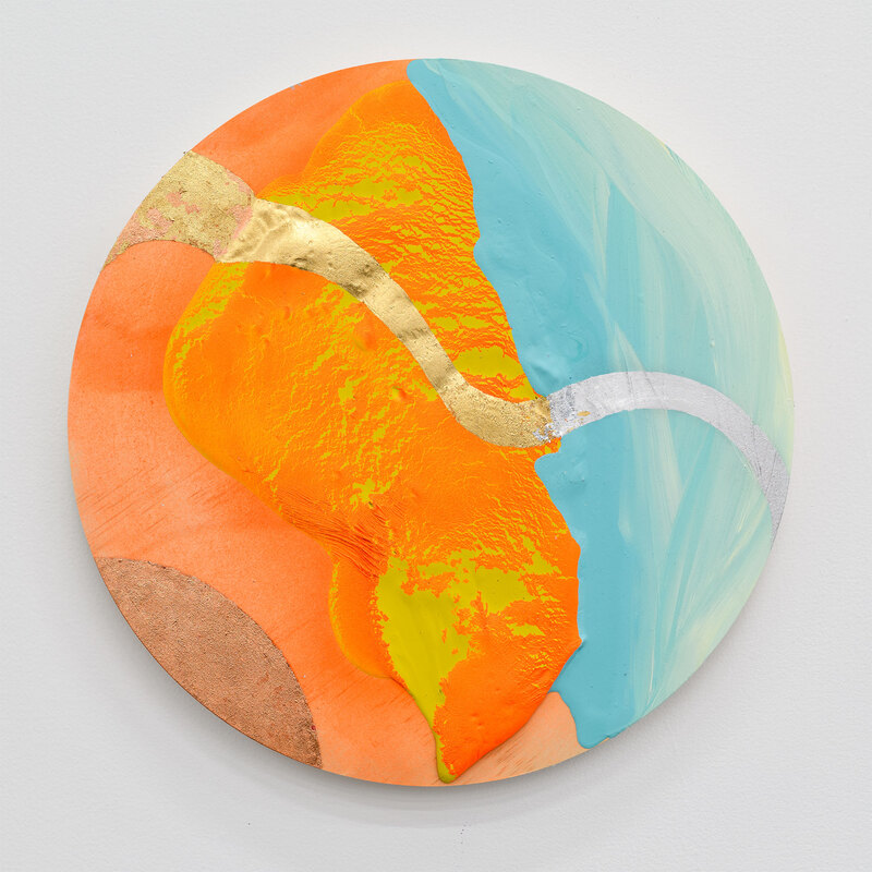 acrylic, metallic leaf and varnish